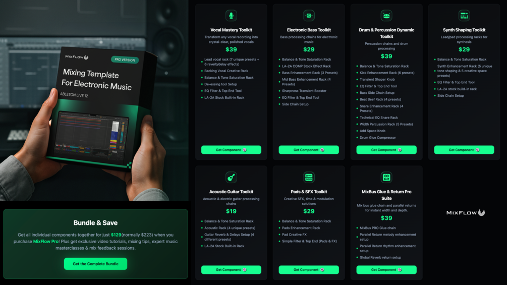 The MixFlow Pro Mixing Template includes the Complete Toolkit Collection (223$ in value for 129$):