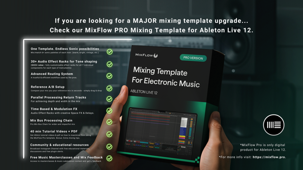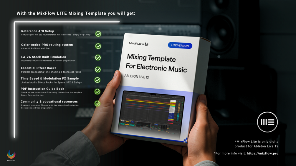 Struggling to get pro-level mixes? MixFlow Lite template is designed to streamline your workflow, enhance clarity, and get you started so your tracks will be organized from the beginning and sound polished and professional - all inside Ableton Live 12.